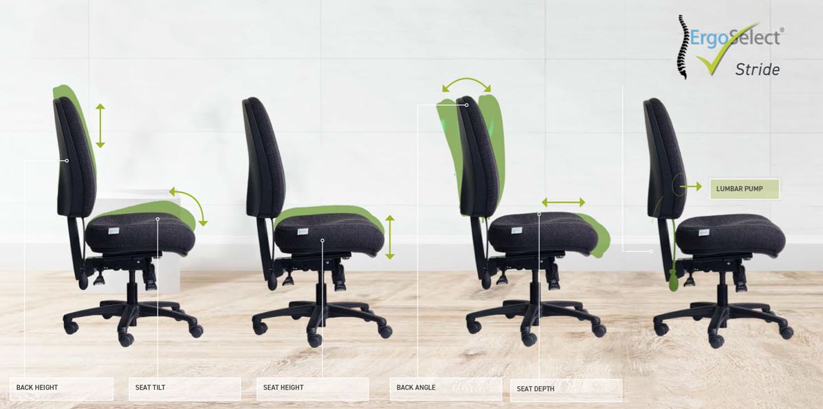 The ErgoSelect Stride delivers premium comfort and exceptional adjustability.