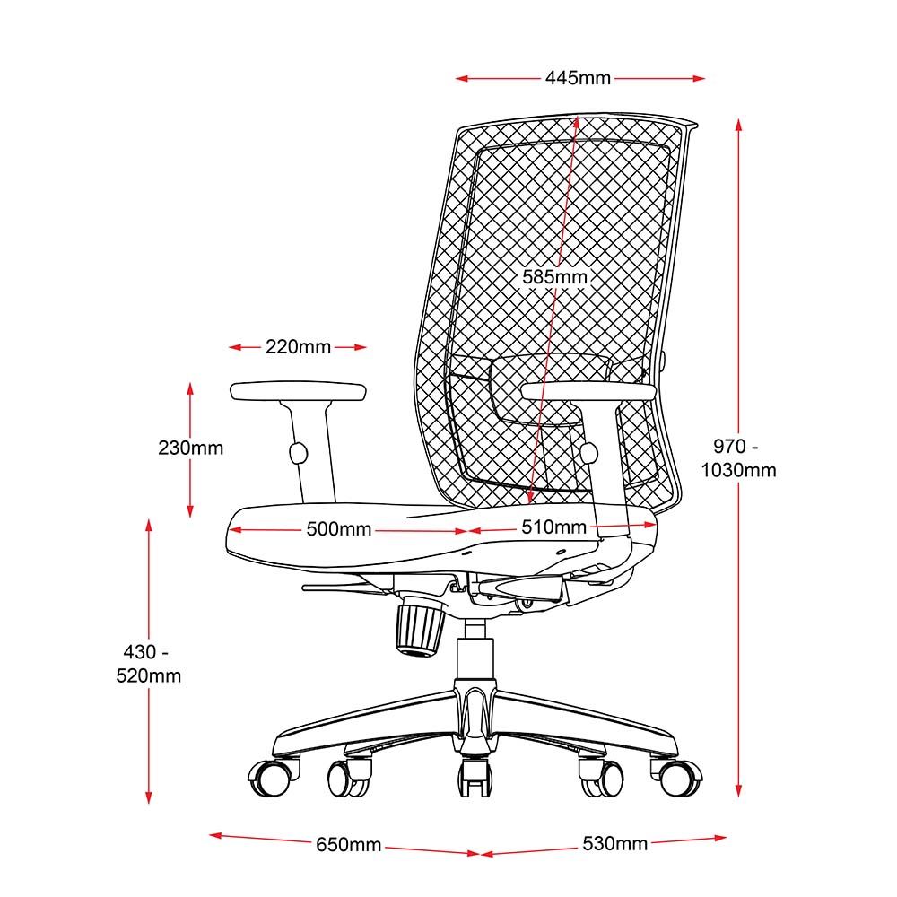 - Dimensions: Back Height: 485mm, Seat Depth: 510mm, Seat Width: 500mm