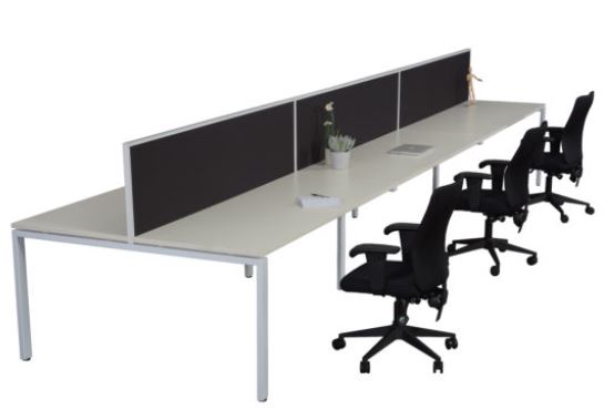The Rapid Infinity Double Sided Workstation range with Screens is perfect for any office fit out or open-plan work space. Available in 2, 4 or 6 person sizes, 2 different bench tops and 3 different dimensions, the options for your space are endless.