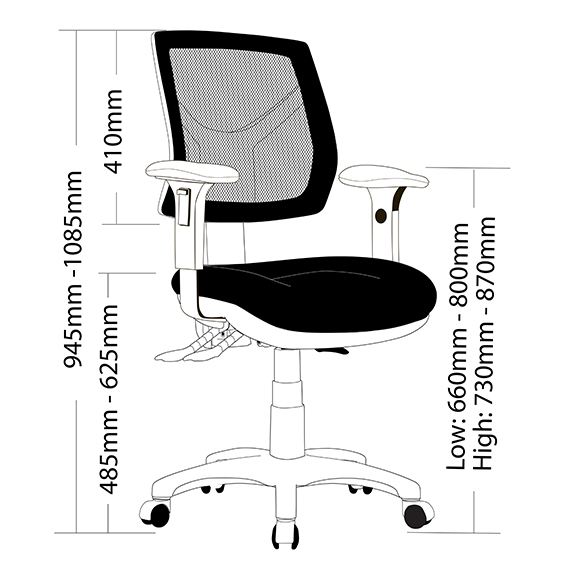 The comfortable mesh back wraps beautifully around the back and the generously padded seat plus 3 levers provide an all-round excellent ergonomic seating choice.