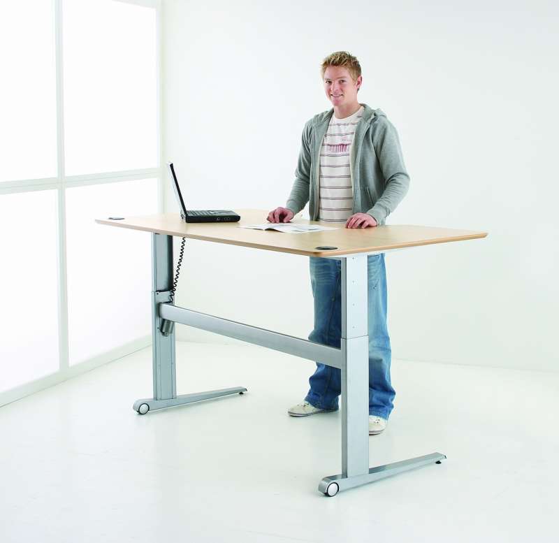 Instead of the conventional fixed height of approximately 730mm, a Height Adjustable Desk, as its name suggests, can be adjusted, either manually or electronically, to a standing height and then re-adjusted back to a sitting height as required.